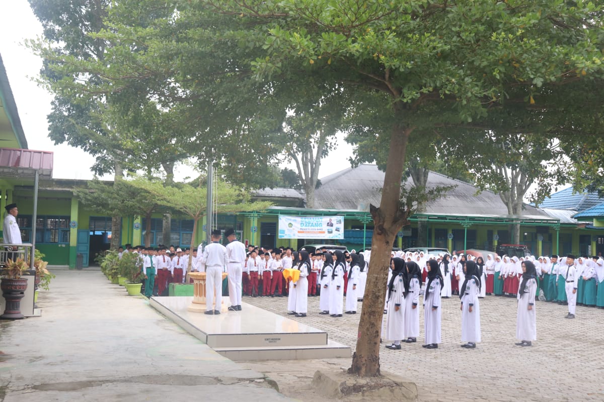 Para siswa datang ke madrasah dengan penuh semengat. Suasana hari pertama masuk madrasah di Tahun Pelajaran 2024-2025 di MTs N 1 Kota Sungai Penuh dimulai dengan upacara bendera bersama melibatkan seluruh siswa madrasah dan tenaga pendidik dan kependidikan dengan Pembina Upacara kepala Madrasah yaitu Bapak Soni Indra, S. PdI