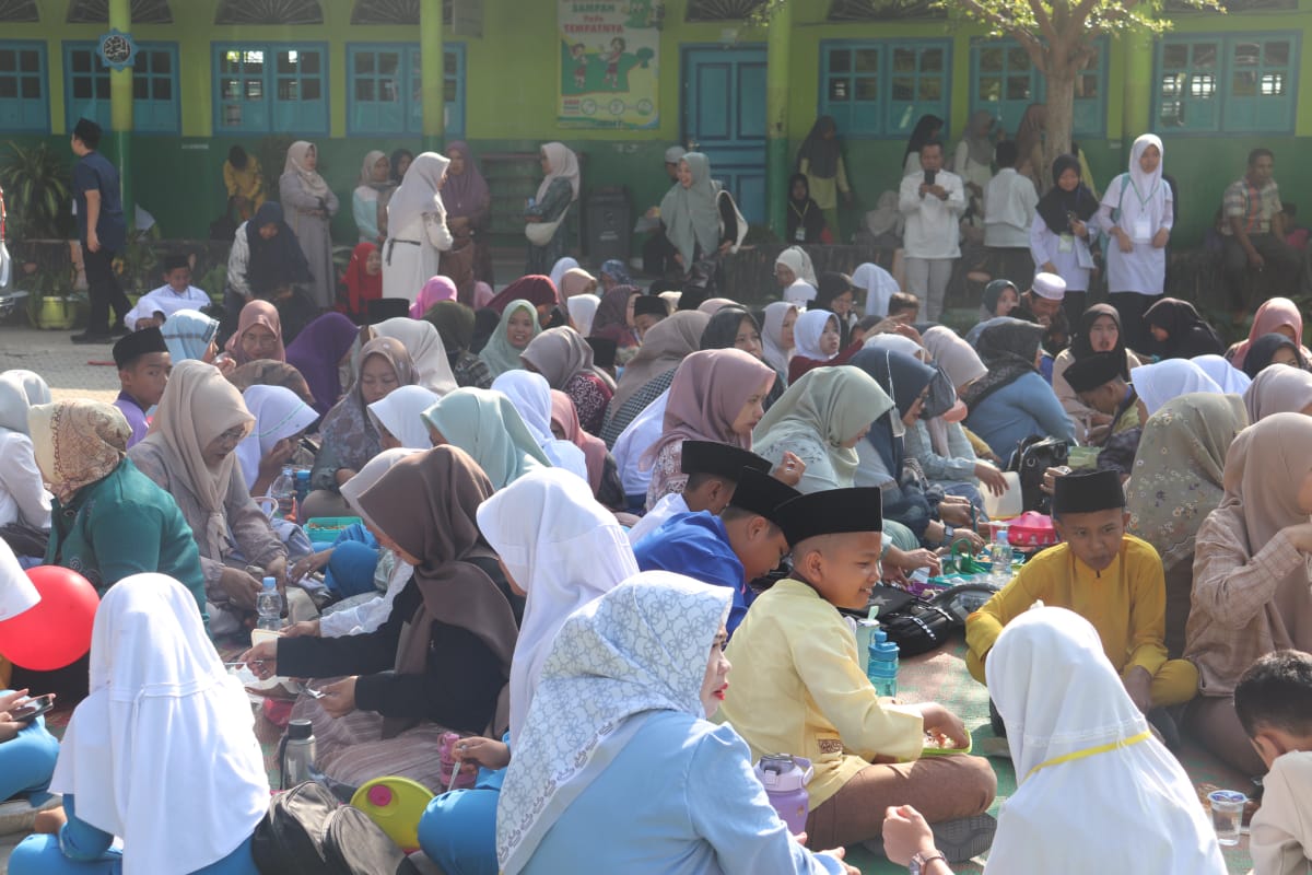 Setelah kegiatan yasinan dan doa Bersama acara dilanjutkan dengan permohonan restu siswa ke orang tua/wali yang diiiringi dengan sholawat, acara ditutup dengan penerbangan balon dan makan Bersama di lapangan madrasah.