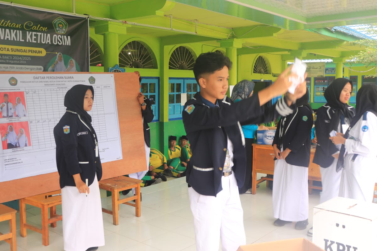Sungai Penuh- Pemilihan Ketua Organisasi Siswa Intra Madrasah ( OSIM) di MTsN 1 Kota Sungai Penuh di laksanakan pada Sabtu, 31 Agustus 2024 bertempat di halaman madrasah . Pemilihan Ketua Organisasi Siswa Intra Madrasah ( OSIM) di MTsN 1 Kota Sungai Penuh menjadi ajang para siswa untuk belajar berdemokrasi. Proses pemilihannyapun digelar layaknya pemilu.