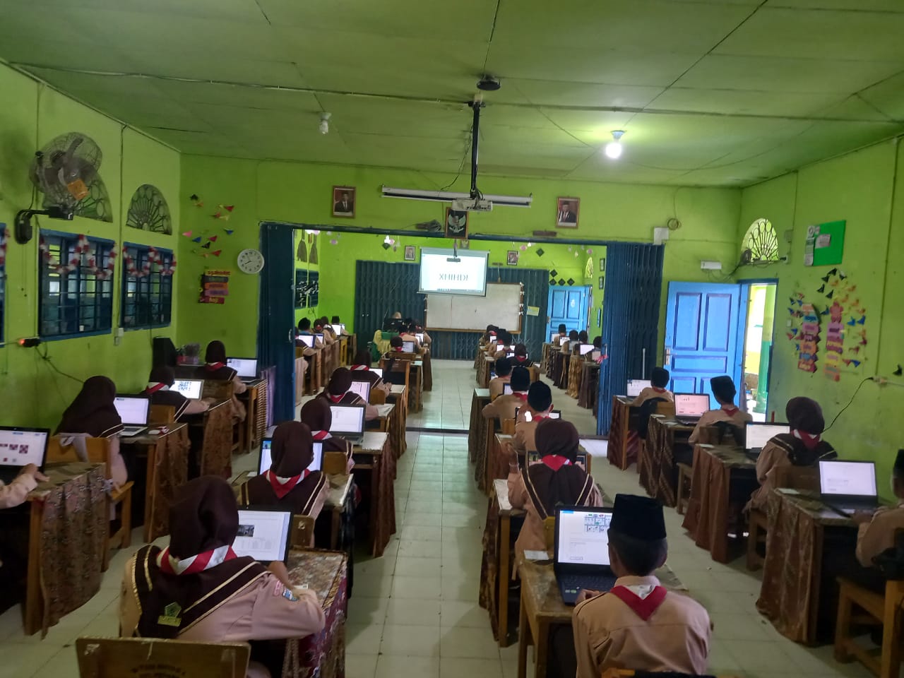 Para siswa tampak mengikuti kegiatan ANBK dengan penuh semangat.