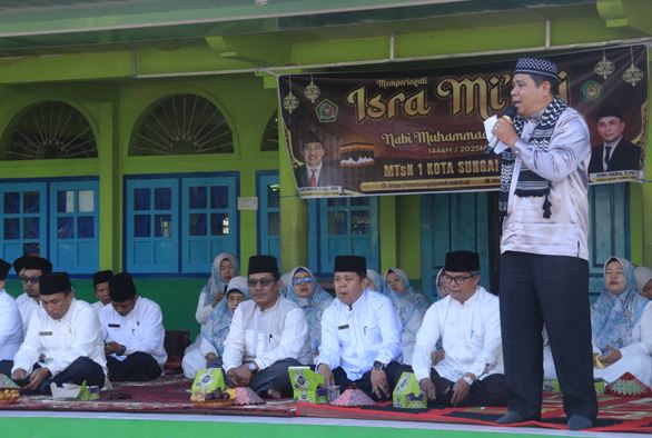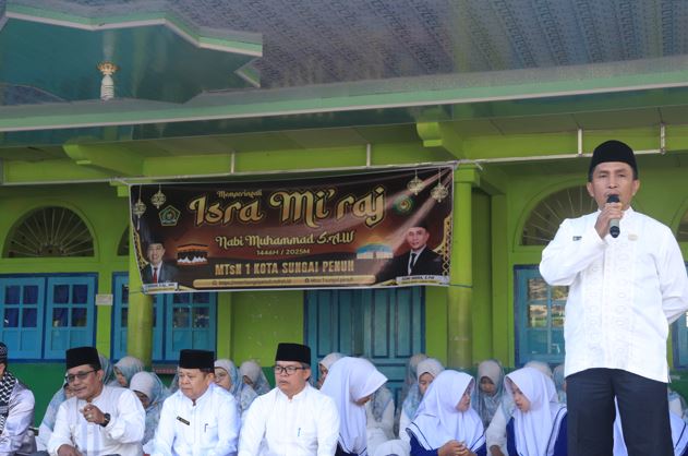 Sungai Penuh( MTsN 1 Kota Sungai Penuh ) – MTsN 1 Kota Sungai Penuh menggelar peringatan Isra Miraj Nabi Muhammad SAW 1446 H tahun 2025 M. Acara tersebut dihadiri oleh seluruh siswa, tenaga pendidik dan kependidikan dan penceramah yaitu ustad Nasriman, S. HI. Sabtu 01 Februari 2025.