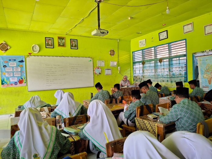 Guru Mata pelajaran Pendidikan Pancasila kelas IX Ibu Elly Marlina, S. Pd juga mendorong siswa untuk mengaitkan materi dengan realitas kehidupan sehari-hari, baik di lingkungan madrasah, keluarga, maupun masyarakat. Beliau juga menyampaikan bahwa hal ini bertujuan agar nilai-nilai seperti gotong royong, keadilan, dan saling menghargai benar-benar tertanam dalam sikap dan perilaku peserta didik.