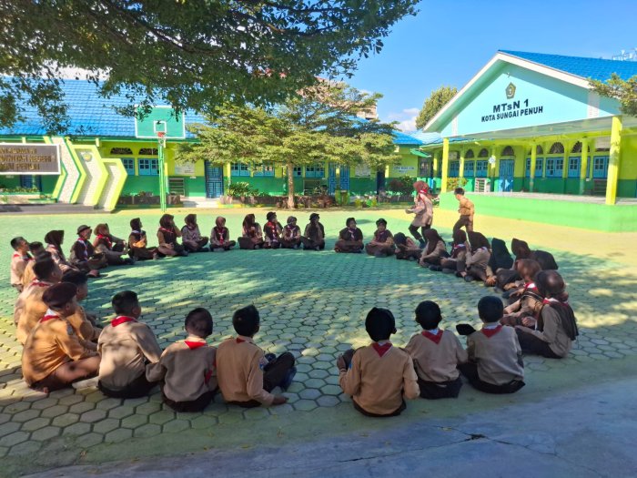 Sungai Penuh(MTsN 1 Kota Sungai Penuh)– Latihan rutin Pramuka di MTsN 1 Kota Sungai Penuh kali ini terasa lebih semarak dan menyenangkan. Kegiatan yang digelar karena diwarnai dengan berbagai permainan edukatif yang dirancang untuk melatih kerjasama, kedisiplinan, dan ketangkasan para anggota Pramuka. Jumat 29 Agustus 2025.