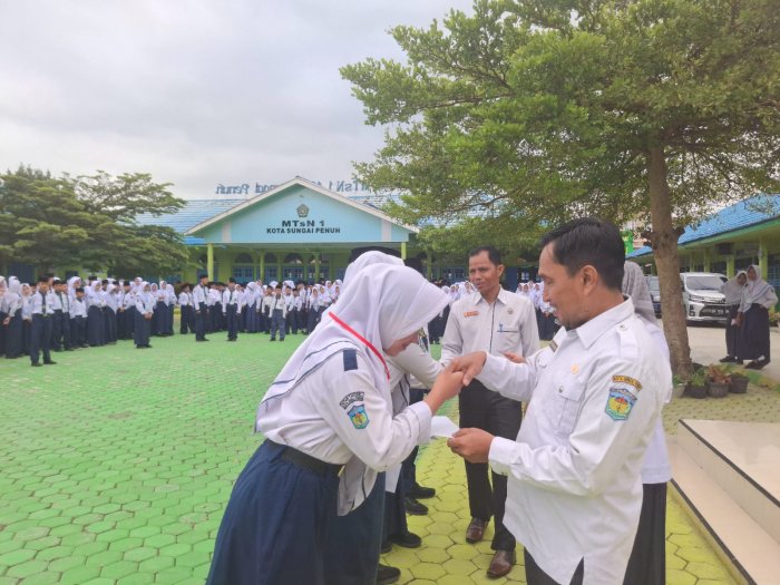 Sungai Penuh (MTsN1 Kota Sungai Penuh ) - Madrasah Tsanawiyah Negeri 1 Kota Sungai Penuh memberikan penghargaan kepada 5 siswa berprestasi yang berhasil lolos ke ajang Olimpiade Madrasah Indonesia tingkat Provinsi Jambi tahun 2025. Selasa 23 September 2025