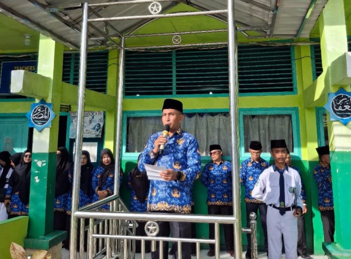Upacara dimulai pada pukul 07.00 WIB dan yang bertindak sebagai pembina upacara, Kepala MTsN 1 Kota Sungai Penuh Bapak Soni Indra, S. PdI., M. Pd.