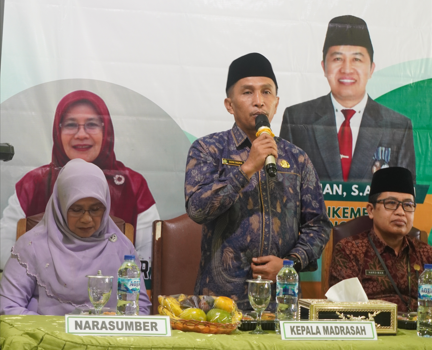 Kegiatan workshop berlangsung dengan penuh antusias dan dihadiri oleh Kepala Kantor Kementerian Agama Kota Sungai Penuh, Bapak H. Hardiman, S.Ag., M.M., yang sekaligus secara resmi membuka acara. Dalam sambutannya Kepala Kantor Kementerian Agama Kota Sungai Penuh menyampaikan apresiasi yang tinggi terhadap terselenggaranya kegiatan workshop tersebut. Beliau menilai bahwa kegiatan ini sangat relevan dan strategis dalam upaya meningkatkan kualitas pendidikan, khususnya di lingkungan madrasah. Turut hadir dalam kegiatan ini, Kepala Bagian Tata Usaha, Bapak Muharum, S.Ag., M.Hi., serta Pengawas Madrasah, Bapak Drs. H. Supratman, M.Pd.
