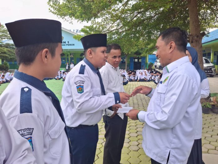 Sungai Penuh ( MTsN 1 Kota SUngai Penuh ) - MTsN 1 Kota Sungai Penuh menggelar pemberian penghargaan kepada siswa berprestasi usai apel disiplin yang rutin dilaksanakan. Penghargaan tersebut diserahkan langsung oleh Kepala MTsN 1 Kota Sungai Penuh, Bapak Soni Indra, S. PdI., M. Pd., sebagai bentuk apresiasi atas pencapaian para siswa dalam berbagai ajang kompetisi. Selasa 14 Oktober 2025
