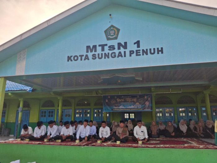 Sungai Penuh(MTsN 1 Kota Sungai Penuh) - MTsN 1 Kota Sungai Penuh menggelar peringatan Isra Mikraj Nabi Muhammad SAW yang berlangsung khidmat di lapangan Madrasah. Kegiatan ini diikuti oleh seluruh siswa, tenaga pendidik, dan tenaga kependidikan MTsN 1 Kota Sungai Penuh. Sabtu 17 Januari 2026