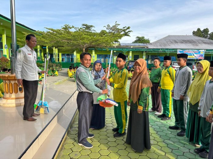 Penghargaan tersebut diserahkan langsung oleh Kepala MTsN 1 Kota Sungai Penuh, Bapak Soni Indra, S.PdI., M.Pd, bertempat di lapangan madrasah setelah pelaksanaan apel kedisiplinan.